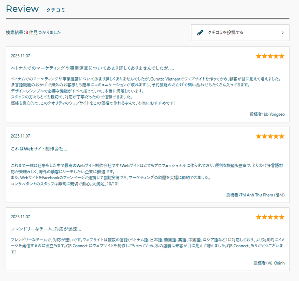 이를 통해 리뷰라는 「고객의 목소리」가 일회성에 그치지 않고 웹사이트에 축적되는 "자산"으로 바뀝니다. SEO 효과도 높아져 검색 결과에서 "후기가 좋은 가게"로 상위 노출되기 쉬워집니다.