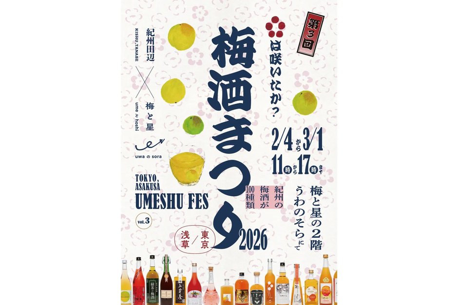 와카야마현의 절품 매실주 100종을 즐길 수 있는 ‘기슈 우메슈 마쓰리 2026’이 올해도 아사쿠사의 ‘梅と星’에서 개최됩니다!