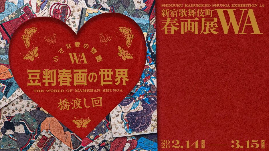 ‘『북斎·英泉 염くらべ ー가부키초 꽃 만발ー』 신주쿠 가부키초 춘화전 WA 제2회’에 앞서, 2026년 2월 14일(토)부터 3월 15일(일)까지 ‘『작은 사랑의 이야기—마메판 춘화의 세계—』 신주쿠 가부키초 춘화전 WA 가교편’을 개최합니다.
