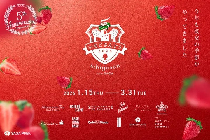 사가의 브랜드 딸기 ‘いちごさん’과 오모테산도의 카페·레스토랑이 협업하여, ‘いちごさん’을 사용한 스위츠 메뉴를 제공하는 특별 기획 ‘いちごさんどう2026’이 개최됩니다.