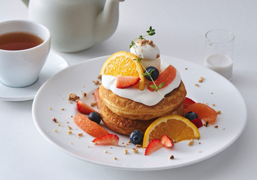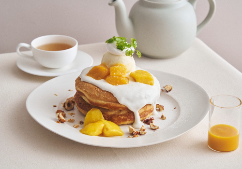 제철 과일을 아낌없이 사용한 시즌 한정 팬케이크와 디저트를 늘 준비하고 있습니다. 당도 30도를 넘는 “꿀 고구마”를 활용한 페어, 오카야마현산 백도를 아낌없이 사용한 디저트 등 그 시기에만 맛볼 수 있는 특별한 한 접시를 만나보세요.