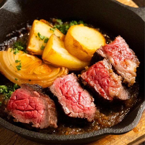 두껍지만 부드러운 고기를 양파와 간장 베이스 소스에 찍어 먹으면 입안에서 감칠맛이 폭발!
