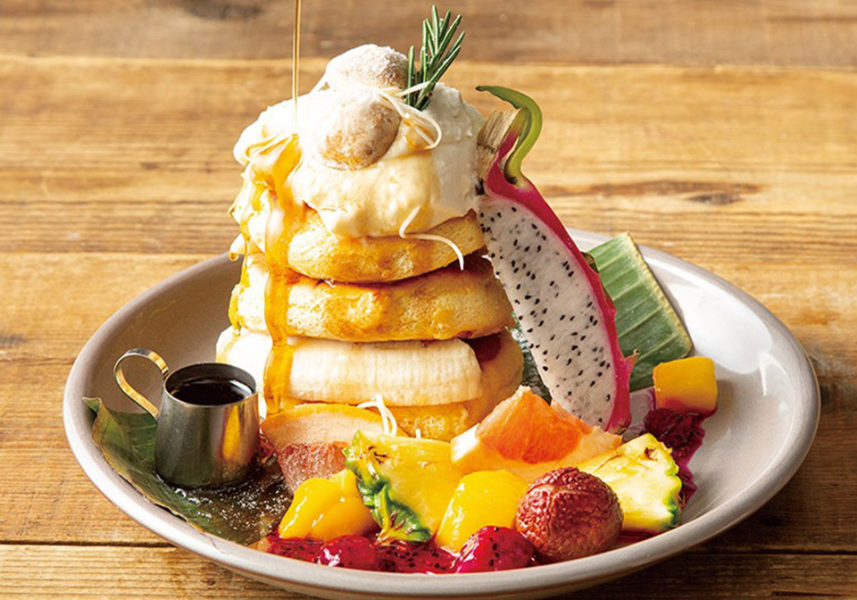 도쿄산 신선한 달걀을 듬뿍 사용해 구워낸, 폭신폭신한 식감의 수플레 팬케이크. 캐러멜 넛츠와 제철 과일 등 다양한 맛을 즐기실 수 있습니다。