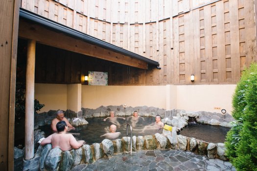 도내 센토에서는 드문 넓은 대형 노천탕이 자랑입니다. 물에 몸을 담그며 눈앞에 우뚝 선 도쿄 스카이트리를 바라보는 시간은 그야말로 최고의 호사입니다. 낮과 밤에 따라 분위기가 달라지고, 사계절의 풍경을 즐길 수 있습니다. 또한 2층에는 남녀 각각 우드 데크가 마련되어 있어 해먹이나 누울 수 있는 의자에서 탕후 외기욕을 하며 스카이트리를 독차지하는 듯한 지복의 시간을 보낼 수 있습니다.