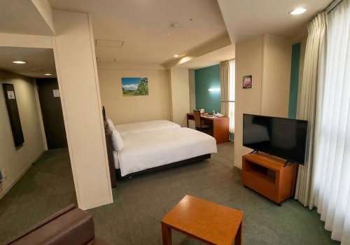 트윈룸 (24㎡): 122cm 폭의 세미더블 침대 2대를 배치했습니다. 비즈니스는 물론 친구와의 여행에도 넉넉하게 이용하실 수 있습니다.