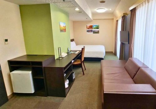 더블룸 (17㎡): 147cm 폭의 더블베드를 배치했습니다. 콤팩트하지만 기능성과 편안함을 두루 갖춰 2인 이용에 안성맞춤입니다.